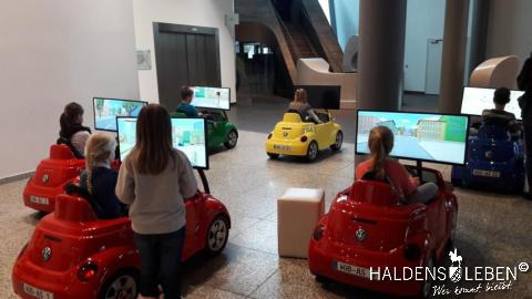 Der 22. Februar war für die Kinder der Lerngruppen E und F ein ganz besonderer Tag. Hier trafen sie sich nämlich einmal statt in der Schule am Haldensleber Bahnhof, um dann gemeinsam mit dem Zug in die Autostadt Wolfsburg zu fahren. Die Zugfahrt verging wie im Fluge... und schon wurden sie von den netten Mitarbeitern der Autostadt empfangen. In zwei Workshops ("Unter Strom" / "Mein Luftraketenauto") basteleten die Kinder unter Anleitung ein Auto, welches sie dann auch mit nach Hause nehmen durften. Damit das Auto auch fährt, verbauten die Erstis fachmännisch einen Stromantrieb. Bei den Zweitis stand die Energiequelle Luft in Verbindung mit dem Rückstoßprinzip im Mittelpunkt. Am Ende fuhren alle Autos :-) und die Kinder hatten sogar noch etwas Zeit, sich in der Bewegungslandschaft der Autostadt auszutoben.