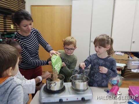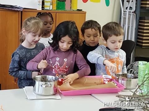Am 20. November 2018 bastelten die Kinder der Willkommensgruppe im Kinderschutzbund Futterglocken für den Winter. Anschließend durfte auch das Bällebad noch einmal ausprobiert werden.