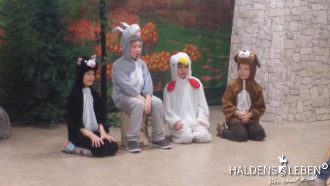 Zum Ende des ersten Schulhalbjahres besuchten die 3. Kassen das Kinderfilmstudio in Magdeburg und schlüpften in die Rollen der "Bremer Stadtmusikanten".