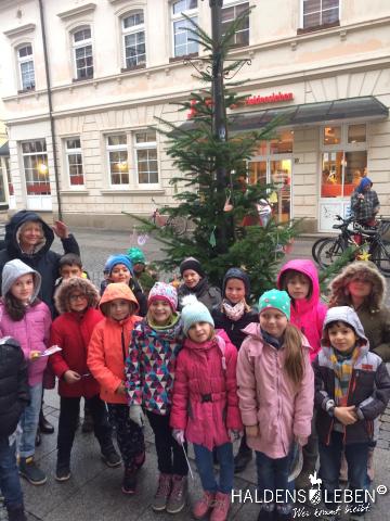 Am 6. Dezember machten sich die Kinder der Lerngruppe A gemeinsam mit Frau Fenske und Frau Fricke auf den Weg in die Hagenpassage, wo sie einen Weihnachtsbaum schmückten. Anschließend gab es im Bücherkabinett bei Frau Fricke eine besondere Nikolauslesung. Auch von dem ein oder anderen Regentropfen ließ sich keiner die Laune vermiesen.