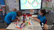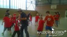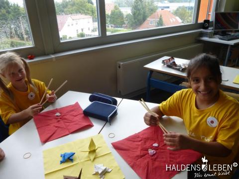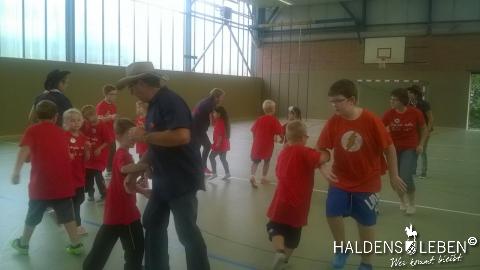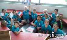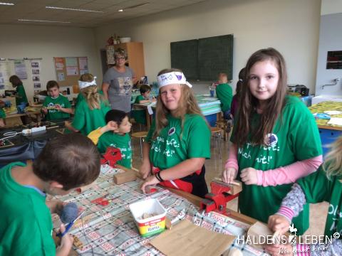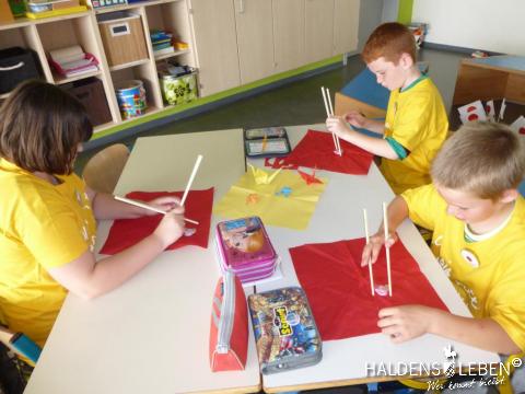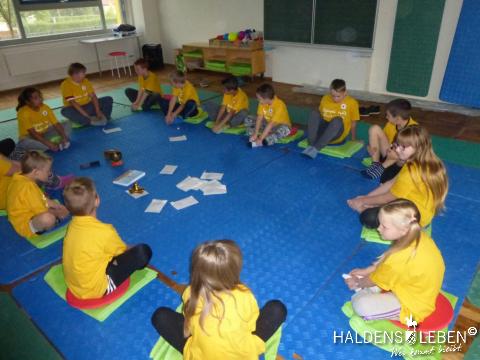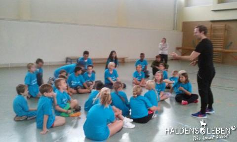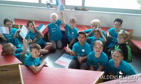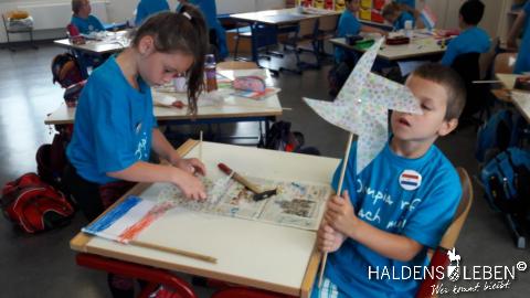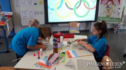 Zum Ende unserer Ankommenswochen war es nun endlich so weit: Die Erich Kästner Grundschule startete ihre ersten Olympischen Spiele gemeinsam mit der Johanne Nathusius-Schule. Am 24. August erhielten alle Schüler ein T-Shirt in einer der fünf Farben der olympischen Ringe, die die fünf Kontinente darstellen. Das Besondere der beiden Projekttage war dabei, dass in jedem Länderteam Schüer der 1. bis 4. Klassenstufe gemeinsam mit körperlich oder geistig behinderten Kindern zusammen lernten, spielten und sportlich tätig wurden. Der olympische Gedanke der Zusammengehörigkeit, des Zusammenhaltens und des "Fair Play" stand dabei stets im Vordergrund.