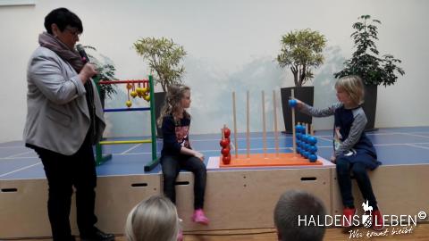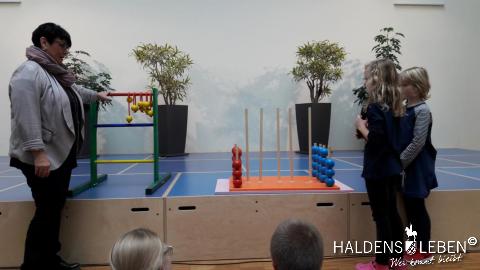 - Die Lerngruppe D stellte die zwei gelungenen Holzspiele vor, die bei einem Klassenprojekt gemeinsam im Team entstanden sind.