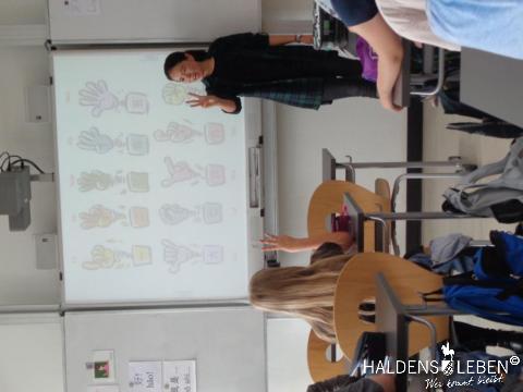 In der ersten Stunde konnten die Pfiffiküsse erfahren, wie cool die chinesische Sprache ist. Sie lernten chinesische Zeichen und wie man Zahlen von 1 - 10 zeigt und ausspricht. Danach gingen die Kinder in verschiedene Klassen und sahen wie die Schüler des Gymnasiums lernen. Es war eine tolle Erfahrung für unsere Pfiffiküsse.