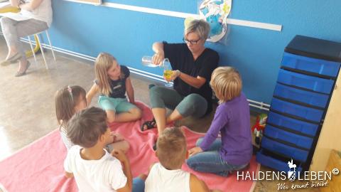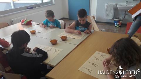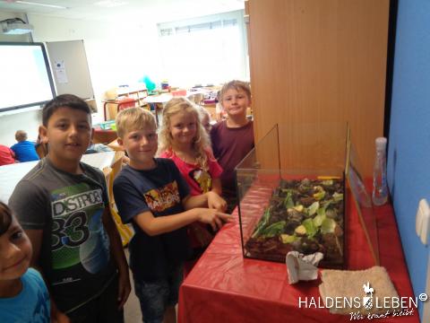 Die Zweitis erforschten währenddessen in einer Schneckenwerkstatt an vielfältigen Stationen das Leben und die Besonderheiten einer Schnecke, führten Experimente durch und gestalteten ein Schneckenbild.