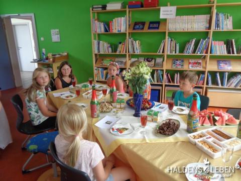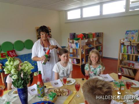 Aus jeder Klasse durfte am vorletzten Schultag ein Kind in der 5. Unterrichtsstunde zum feierlichen Schulleiterempfang in der Bücherei, wo es sich in das Ehrenbuch der Schule eintragen durfte. Die Eintrittskarte für diese besondere Ehrung erhielten die Kinder im Rahmen der vorausgehenden Schülerversammlung.