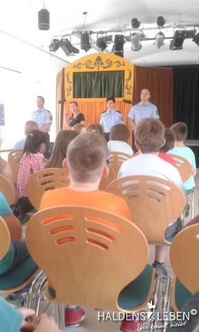 Am 23. August 2016 überzeugten die drei Polizisten (Vincent Woska, Susanne Ledig und Maik Lehmann) zuammen mit der ausgebildeten Puppenspielerin Kerstin Wilhelm unsere Drittklässler mit ihren unterhaltsamen Puppenspielertricks und lehrten kindgerecht die wichtigsten Regeln zum Verhalten im Straßenverkehr. Für die Kinder war es erfrischend und eine gute Wiederholung zur Verkehrserziehungswoche im vergangenen Schuljahr.