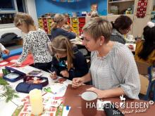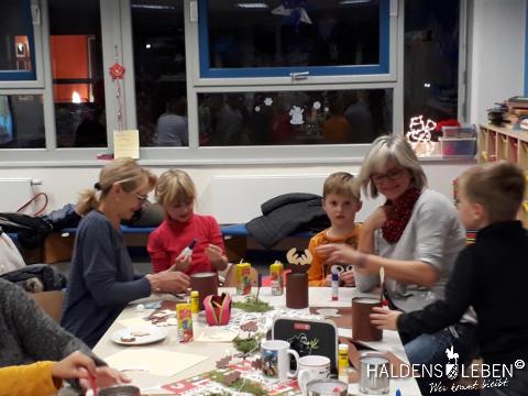 Am 5. Dezember verbrachten Kinder und Eltern ebenfalls einen gemeinsamen Weihnachtsbastelnachmittag im Klassenraum der Schule. Nach einem ausgiebigen Kaffeetrinken konnte man sich an verschiedenen Bastelstationen ausprobieren.